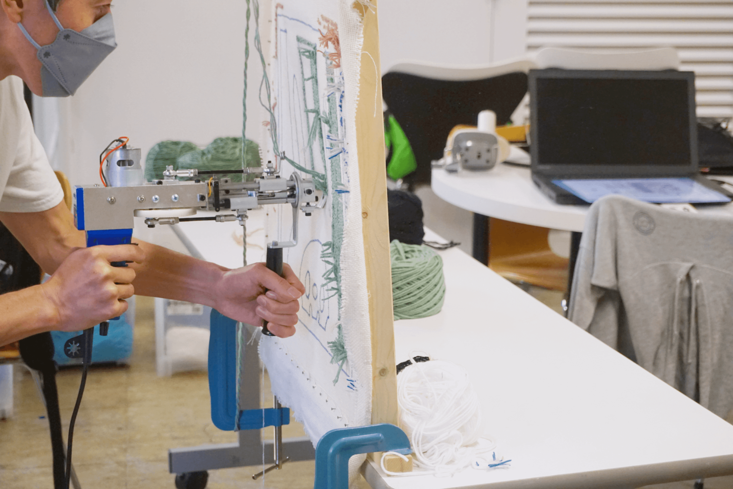 新しい技法のように思えるかもしれませんが、実家ではもともとタフティングガンを使って絨毯を作っていたので、僕にとっては子どもの頃から当たり前にあったものなんです。