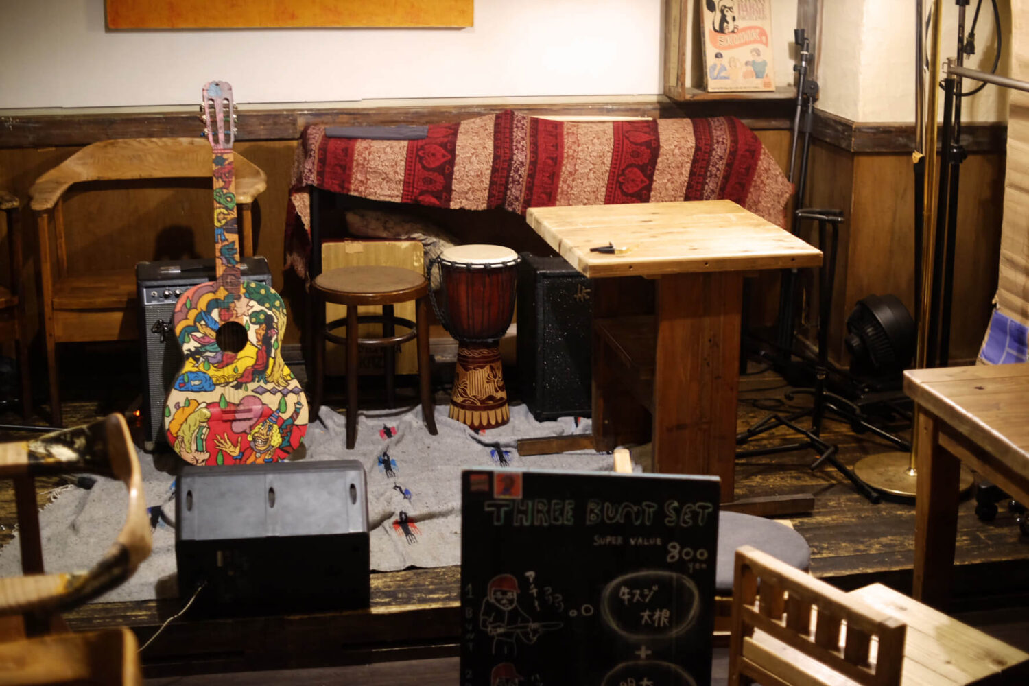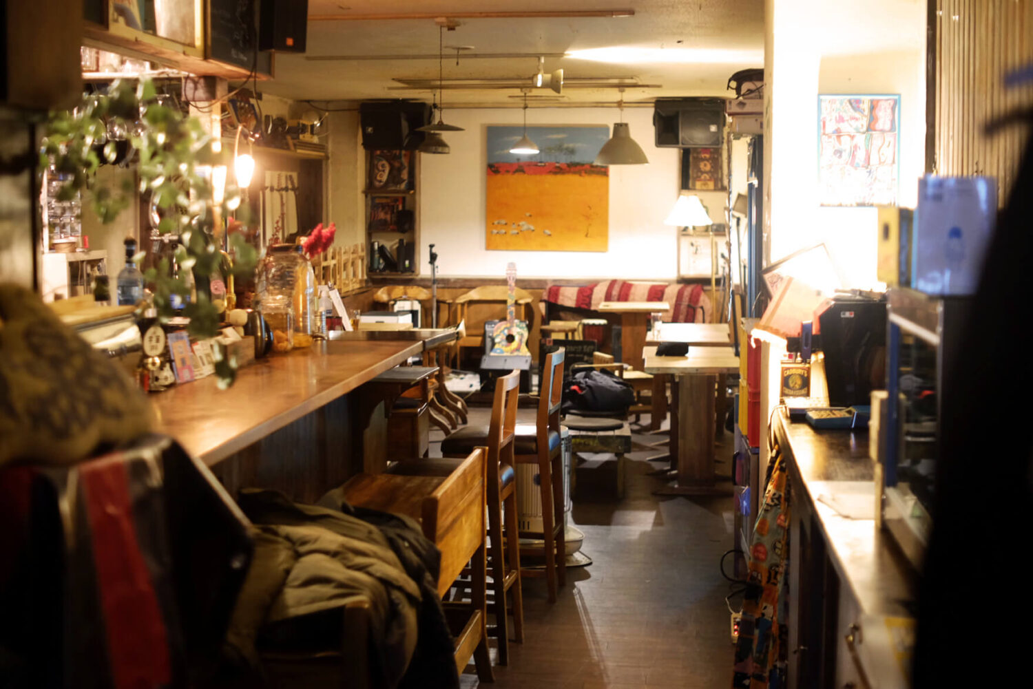 音楽イベントを中心として、古着の販売やアート作品の展示など多彩なジャンルのイベントを開催しているこのお店。飲食店の枠を超え、さまざまな人が「面白い」を求めて足を運ぶ、言わずと知れた人気店です。