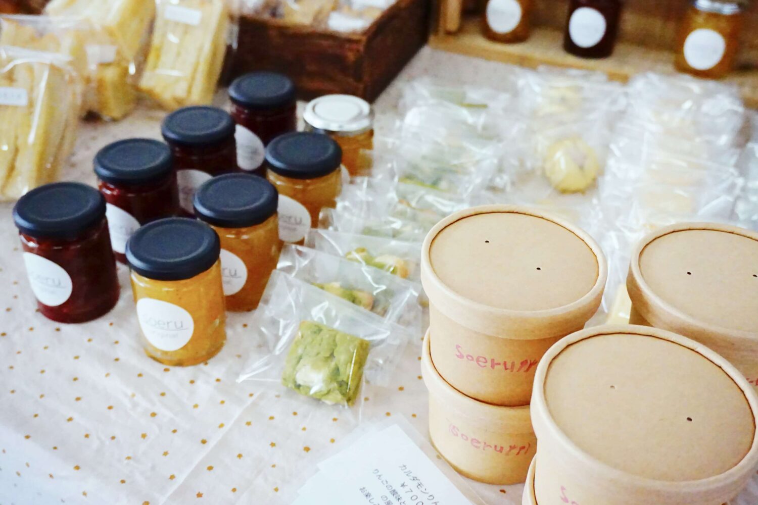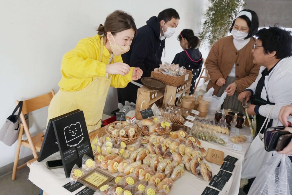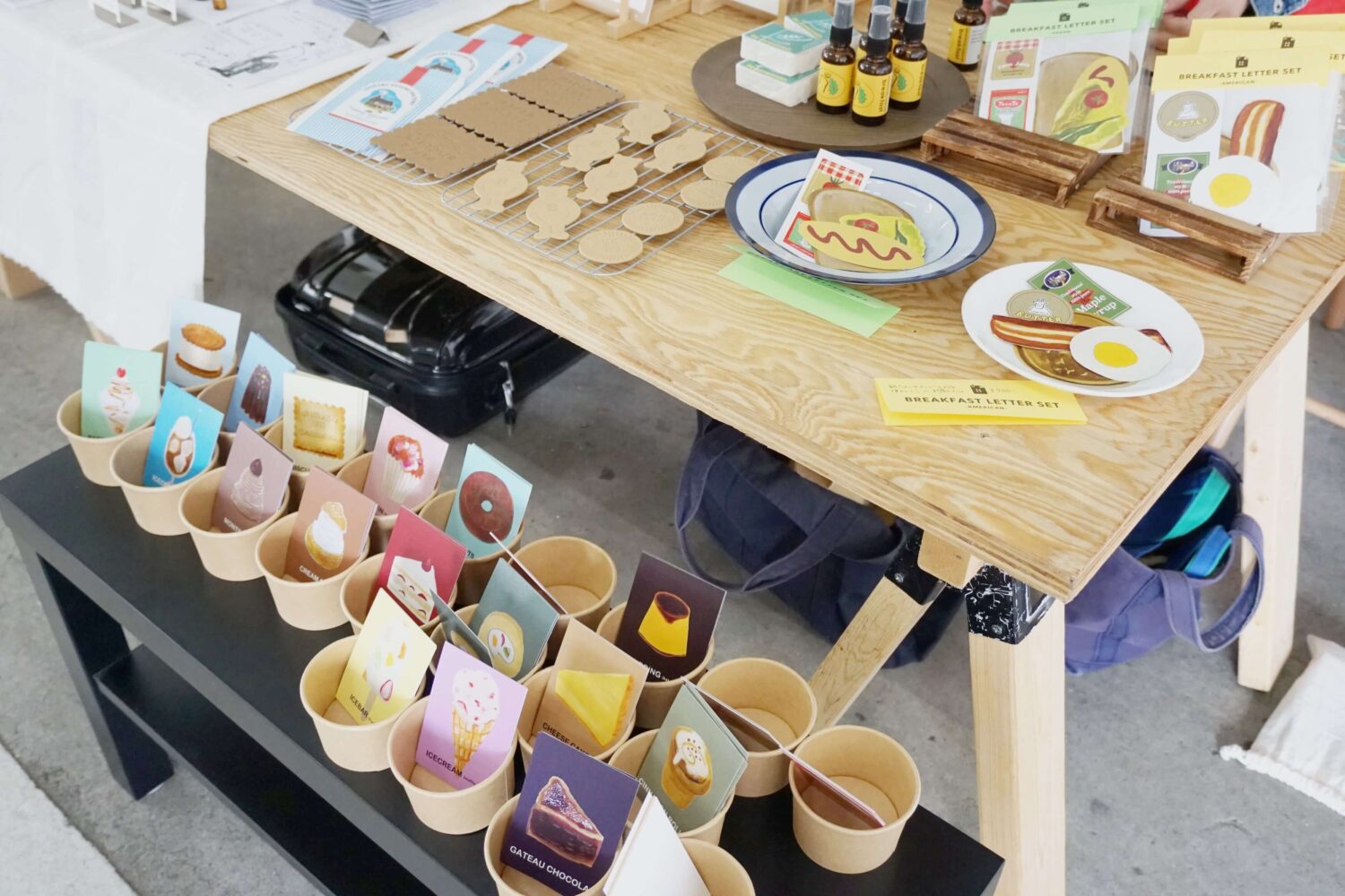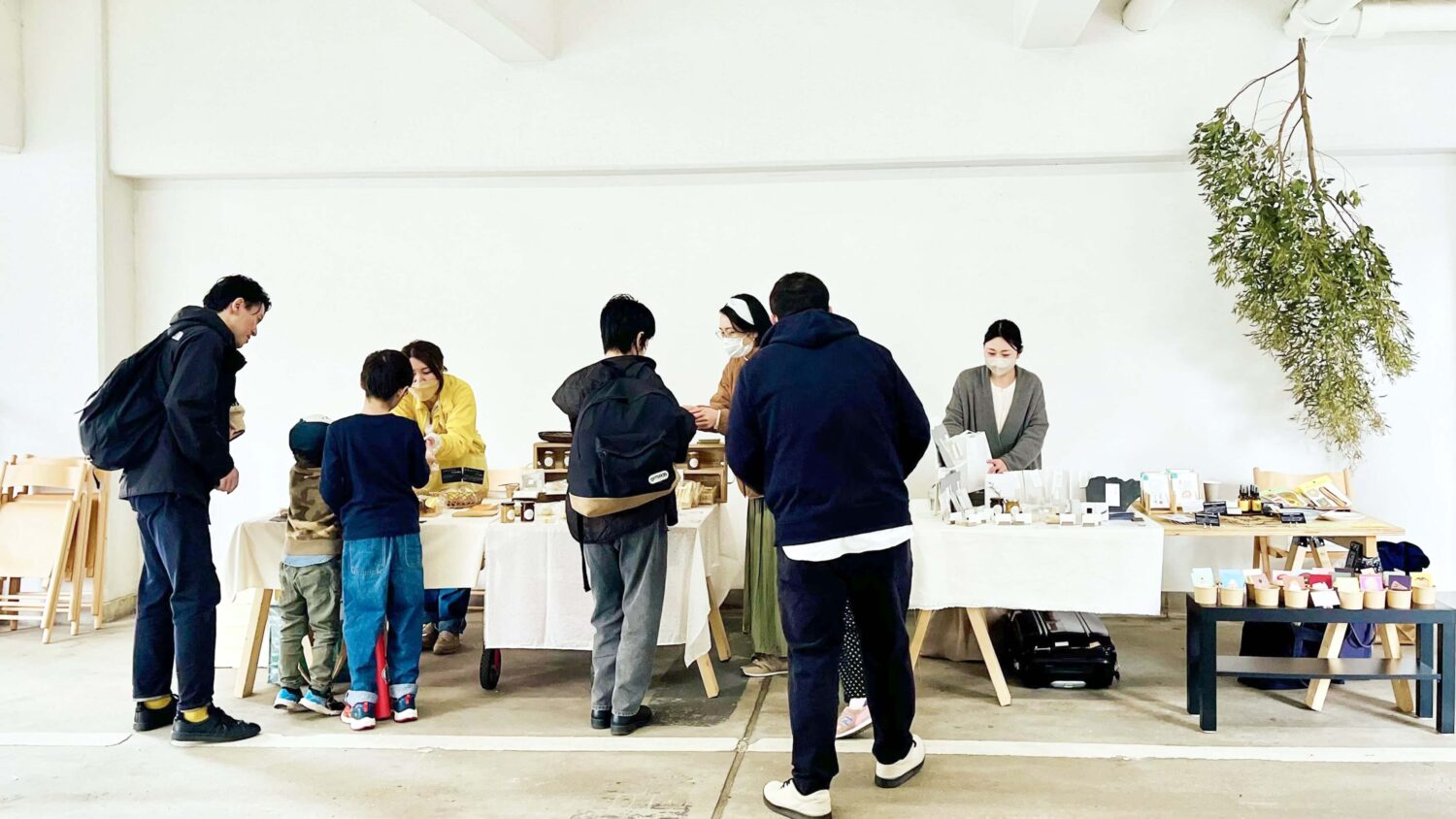THE6 1F駐車場ではマルシェを開催。THE6に縁のある出店者による魅力的なマルシェと、株式会社エコラがショールームで使用した家具などのガレージセールが開かれました。