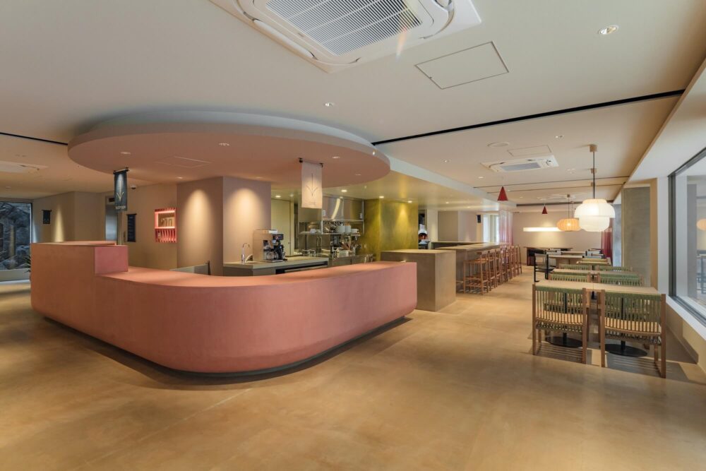 24の客室・サウナ・レストラン・アクティビティセンター等を備えた複合施設は「街のリビングルーム」として、施設の中で完結せず、長門湯本の街や自然環境、地域の人々とつながり、交流する機会をつくるように「間(あわい)」をテーマに設計しました。