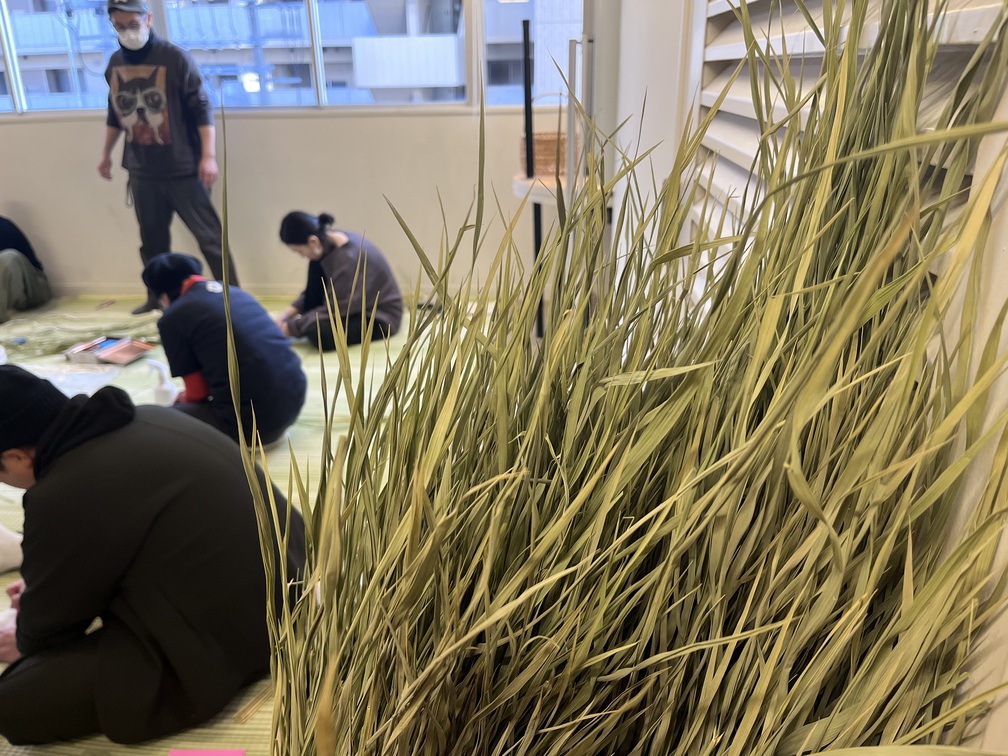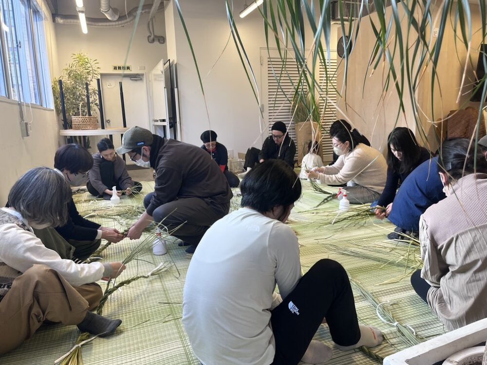 青いまま天日干しされた稲藁の良い香りに包まれながら、慣れない手の動かし方に集中し、思考の忙しい毎日から少しだけ離れる時間に。しめ飾りに関する文化や歴史についてのお話や、ときには冗談も交えた大場さんのトークもこの講座が人気の理由のひとつ。「来年も楽しみにしています」と嬉しいお言葉もいただき、「よいお年を」と挨拶を交わしておひらきとなりました。