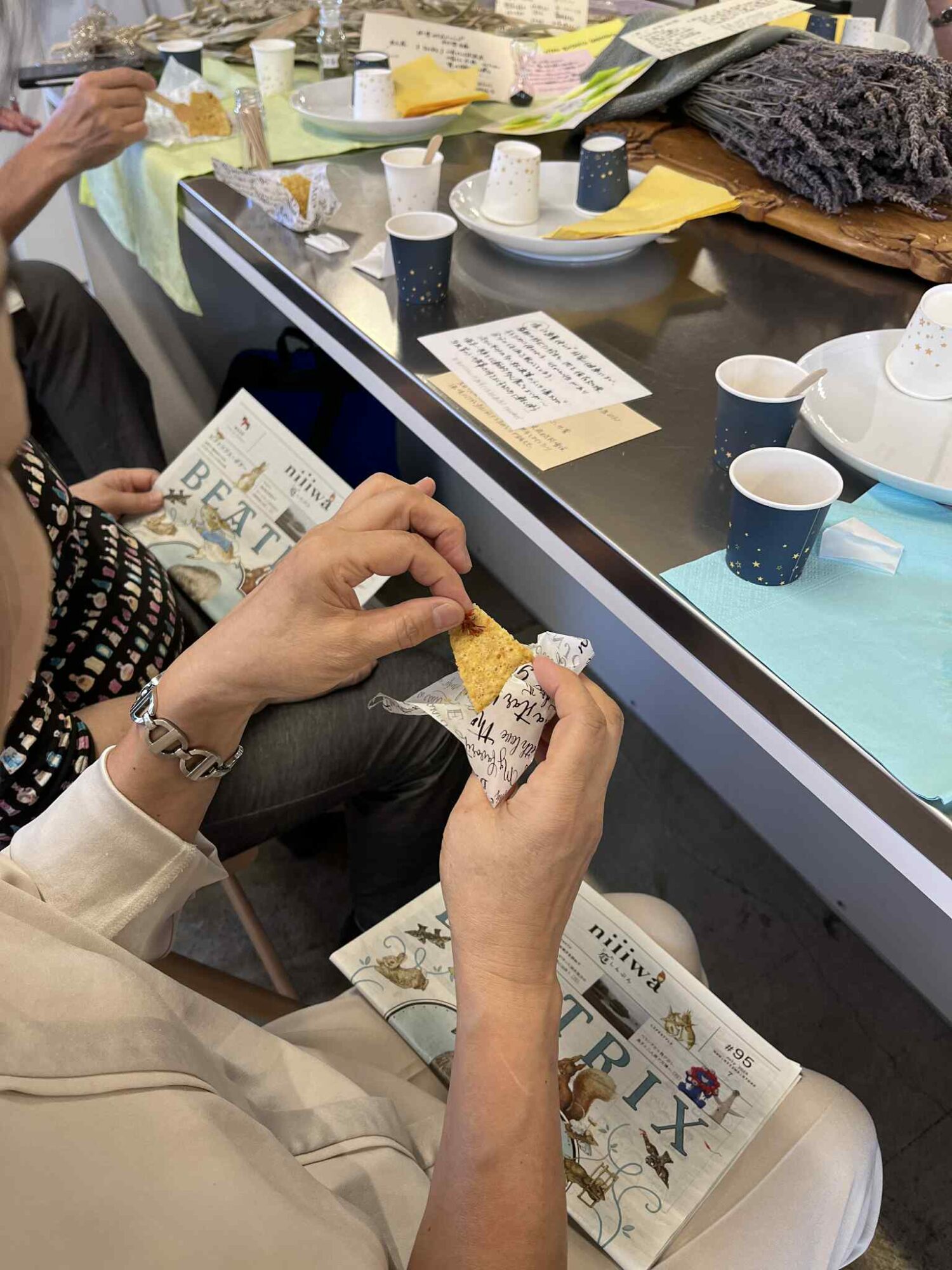 参加者のみなさんと大きなテーブルを囲んで、「これが好き」「こんな使い方もあるんだね」など感想を伝え合いながら、にぎやかで美味しい時間を過ごしました。