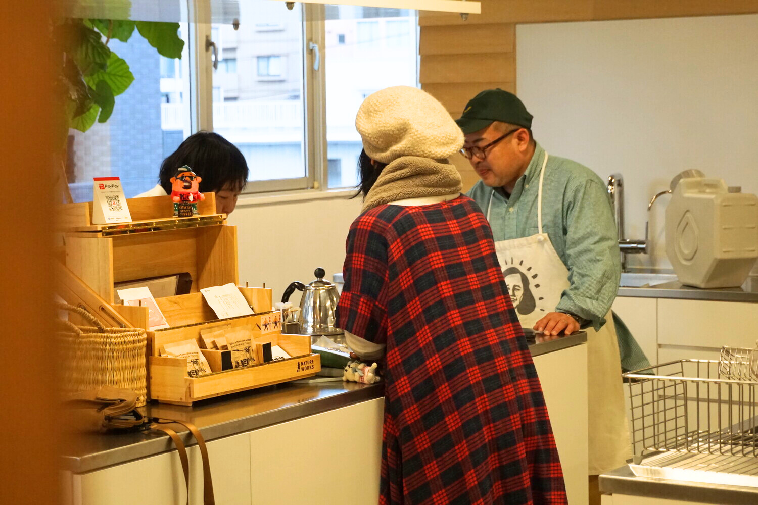 DJとしても活躍する佐藤さんがセレクトしたレコードが流れると、ワークラウンジは非日常な空間に。 白石の人気店『焼菓子製作室 イロドリ』さんの絶品お菓子と、美味しいコーヒー。 最高のBGMに包まれて、自然と交流が生まれる豊かな時間となりました。