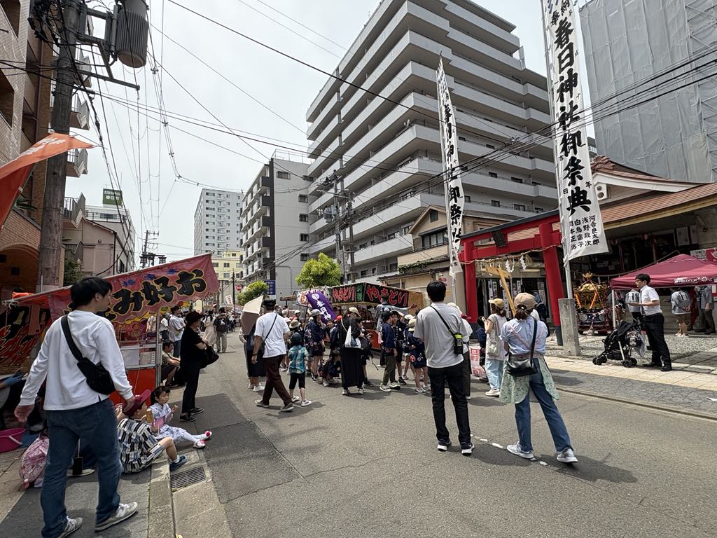 この例大祭はお神輿の巡行や出店が立ち並び、地域の方々に長く愛されるお祭りです。今年はTHE6を運営する株式会社エコラとして出店させていただきました。
